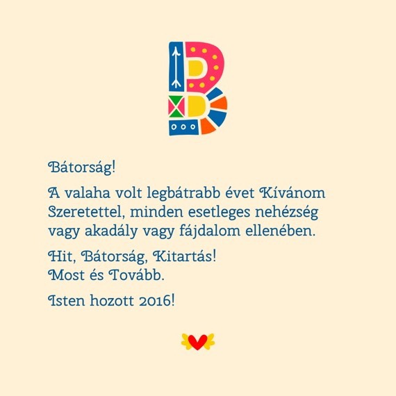 január 1, 2016 2016 – a Bátorság éve Legyen! Öröm, ha megosztod! Jó az, ha Fáj. Élsz, Halsz, vagy létezel? A boldogság hősies önfeláldozás. A boldogság ára. Joós István január 1, 2016 Dolgunk itt, Válság és Változtatás Nyilvános Előző Következő