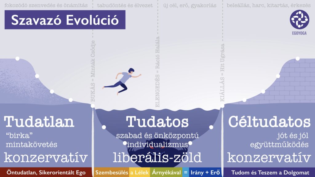 A liberális oldal, ha nyerni akar, ahhoz a tudatos szintre kell sokkal több szavazónak elérkeznie. Amiben lehet nekik segíteni. És ugyanígy: a konzervatív oldal, ha nyerni akar, akkor a tudatos állapotból a céltudatos szintre továbblépni kell tömegeknek segítsen, különösen, hogy a mai fiatalok között sokkal korábbi és sokkal széleskörűbb már a tudatosságra ébredés, ami azt jelenti, hogy a fiatalabb generációk általában már első szavazóként is liberálisok vagy zöldek, s így a jobboldali szavazók kihalóban vannak.